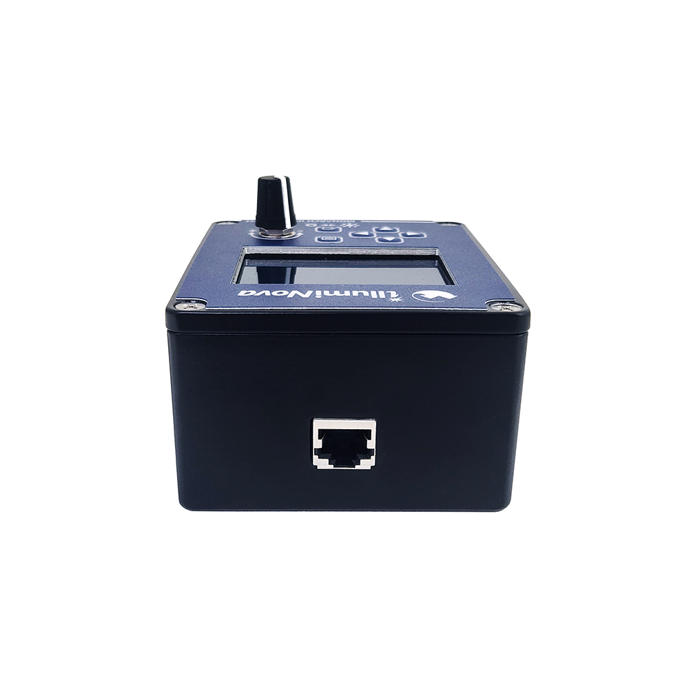 The illumiNova® Remote Controller with LCD provides remote operation up to 100 feet away from the strobe. Includes a 25 ft. Cat 5E interconnect/power cable.