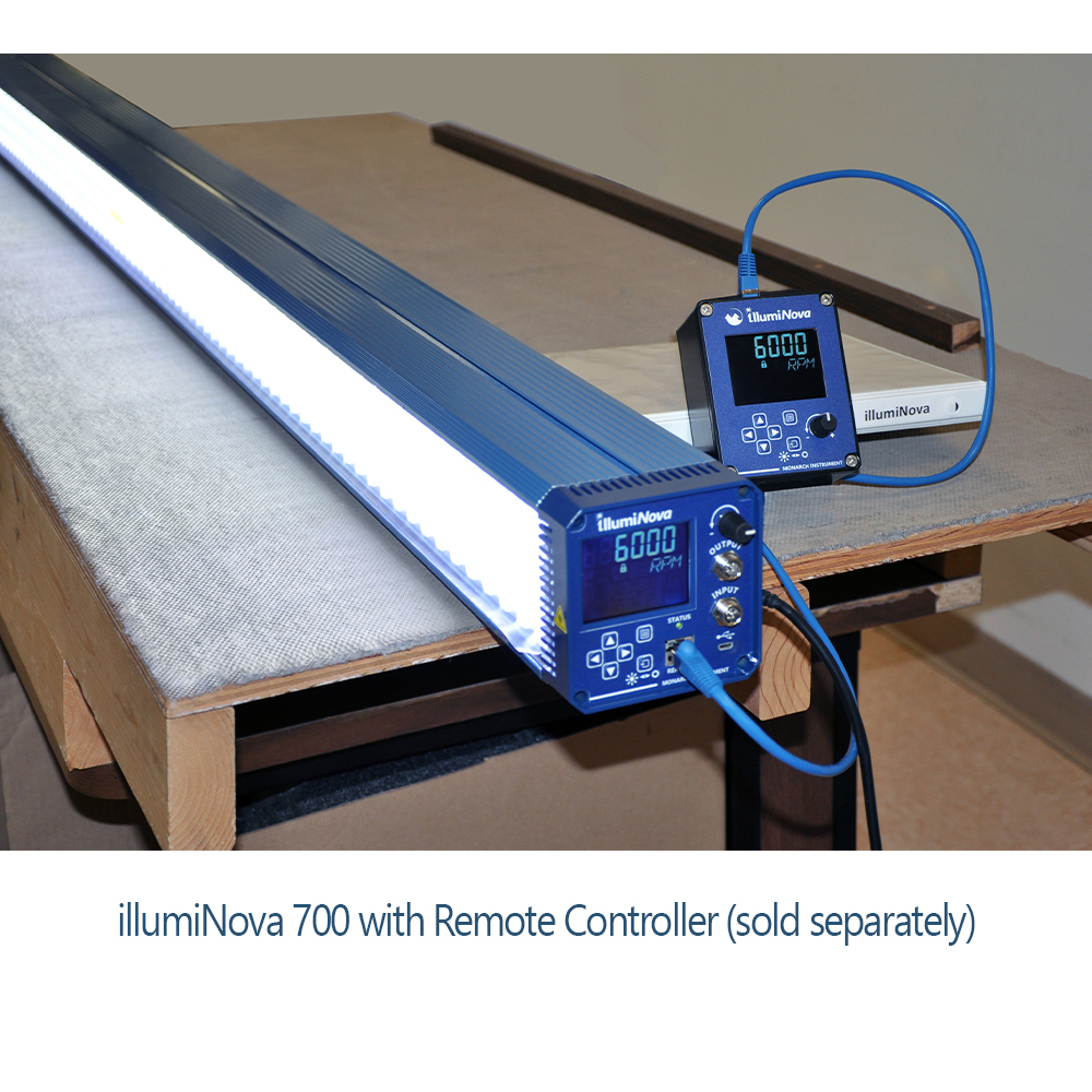 The Remote Controller allows you to be in a safe location while an overhead or mid-stream stroboscope is working in position. The same autonomous remote controller can be used on any illumiNova® Fixed Mount Stroboscope throughout the production facility.